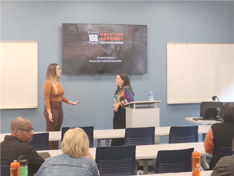 160 Driving Academy Waukegan Location’s Business Development Specialist, Amanda, and Emily, our 160 Driving Academy Customer Success Manager, hosted a meeting this morning, September 21st, with Lake County Workforce to go over what 160 Driving Academy is all about and everything that we have to offer as the Nation’s Largest Commercial Driving School.