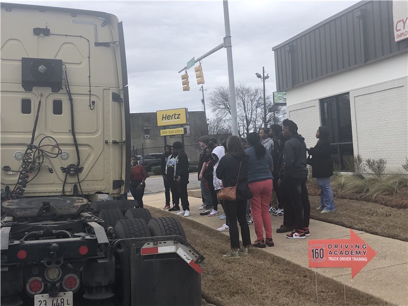 160 Driving Academy Birmingham Location in partnership with Huffman High School hosted their Touch a Truck Event on Thursday, February 9th, 2023, to let interested attendees see the demo fleet of the trucks on-site, interact with and even ride in, and learn more about getting a Commercial Driver’s License.